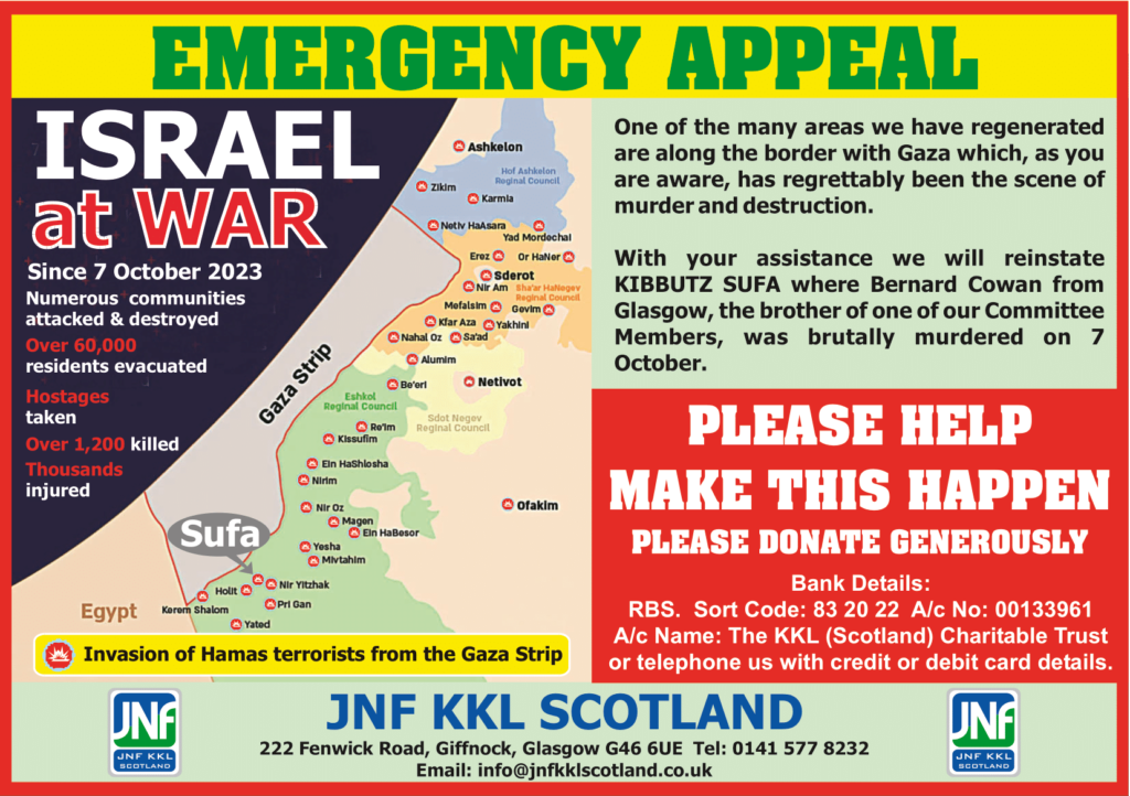 For almost 40 years on the occasion of Tu B'Shevat, the New Year For Trees JNF KKL SCOTLAND have organised a telethon to raise funds for Israel.